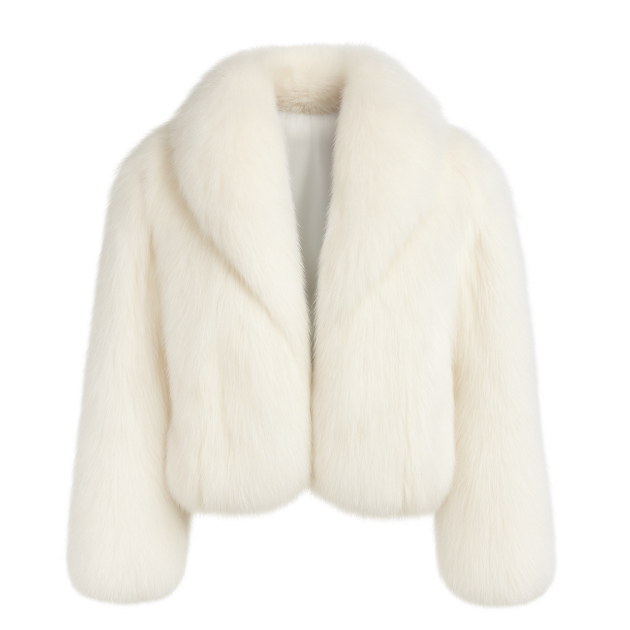 Шуба создана из отборного белого песца Shadow, который сохраняет натуральную белизну и не желтеет со временем. Лёгкий объёмный силуэт достигается благодаря особой технологии пошива, а подкладка из итальянского шёлка обеспечивает комфорт и мягкость. Срок пошива: 3–4 недели.